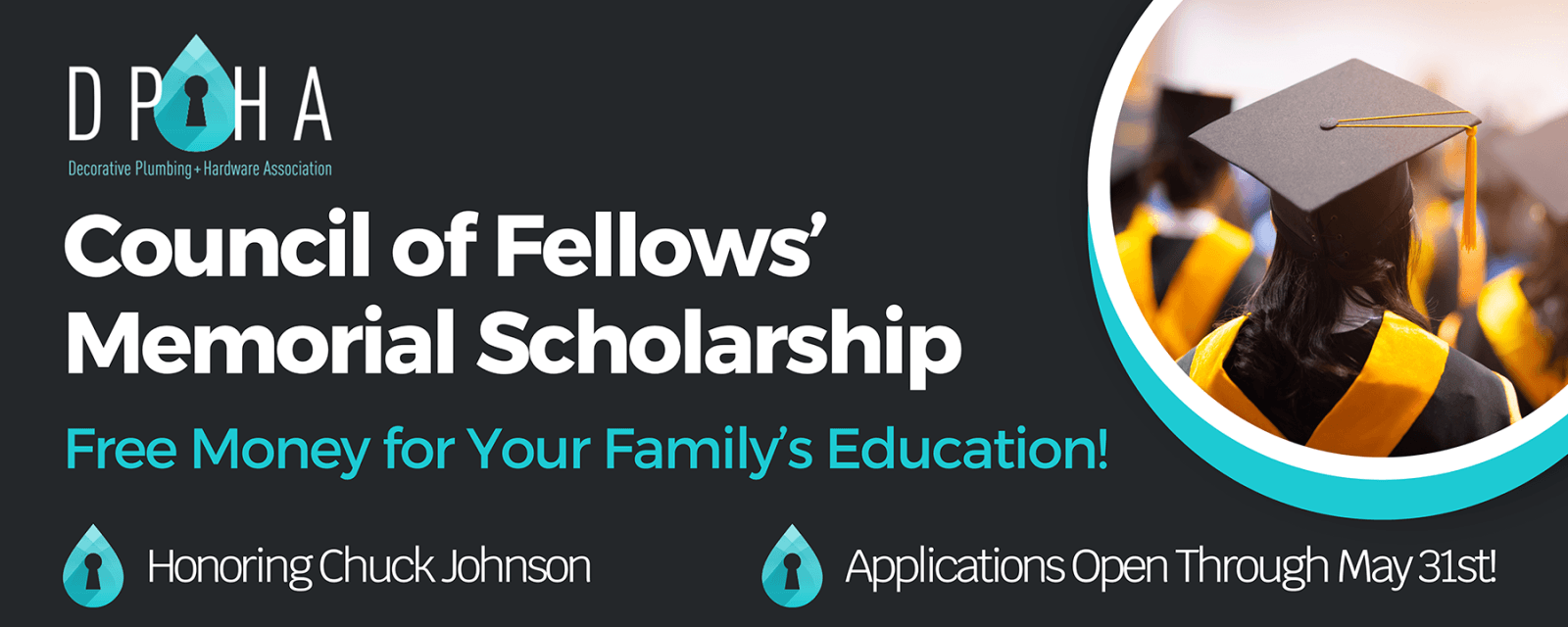 Established in 2008 by the DPHA Council of Fellows, the Scholarship Foundation honors the memory of all industry leaders and is presented at the DPHA Annual Conference held each fall. The Scholarship Fund is a monetary award to further the college, trade school or other postgraduate education of a child or grandchild of any individual working at a Decorative Plumbing & Hardware Association member business. Applications for 2026 will be accepted through May 31st. The winners selected for this year will be announced at the Conference in Salt Lake City on October 23rd.