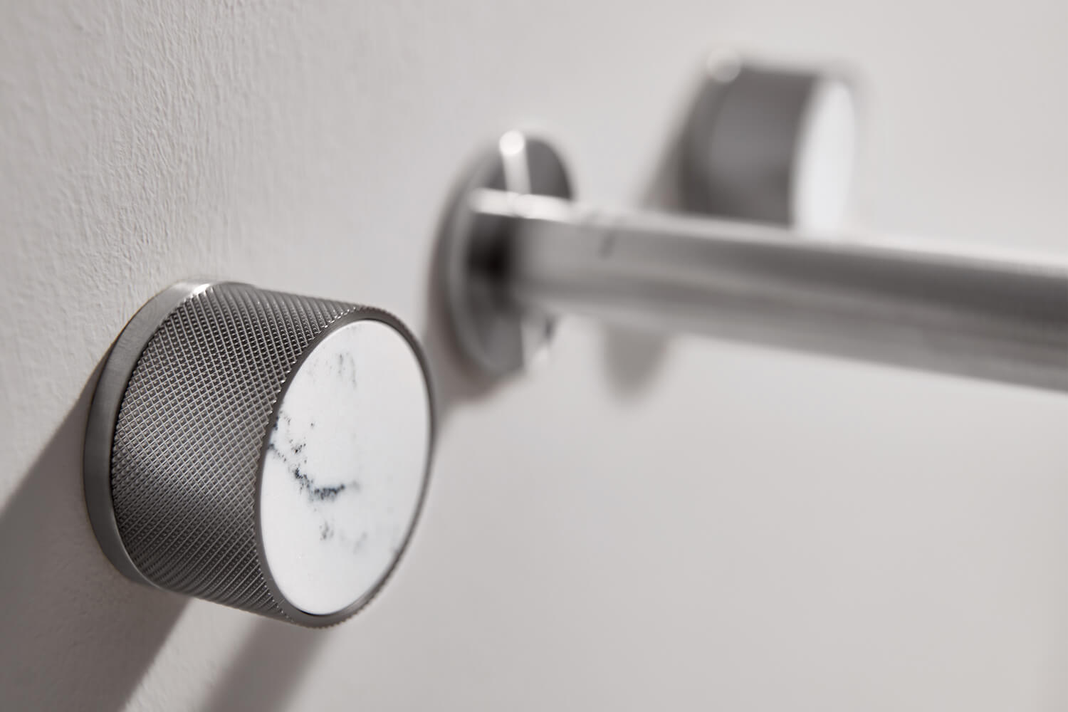 The collaboration debut features GROHE SPA’s timeless finishes - Brushed Warm Sunset, Brushed Cool Sunrise, and Matte Black finishes, matched across Buster + Punch cabinet and door hardware, lighting, toggles, dimmers, USB ports and duplex outlets. Sharing design cues, the brand’s signature knurling heightens tactility and ensures perfect harmony across the range.
