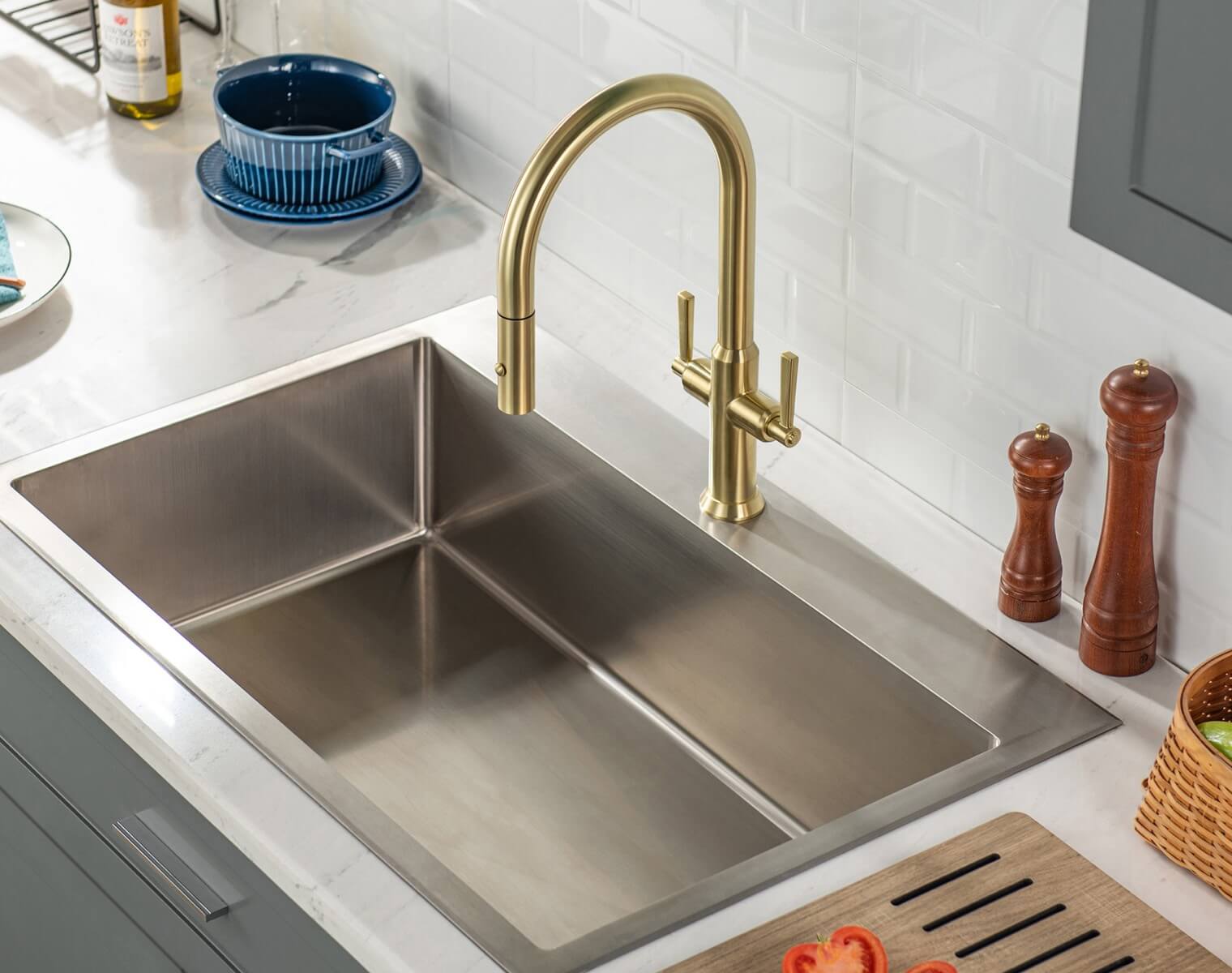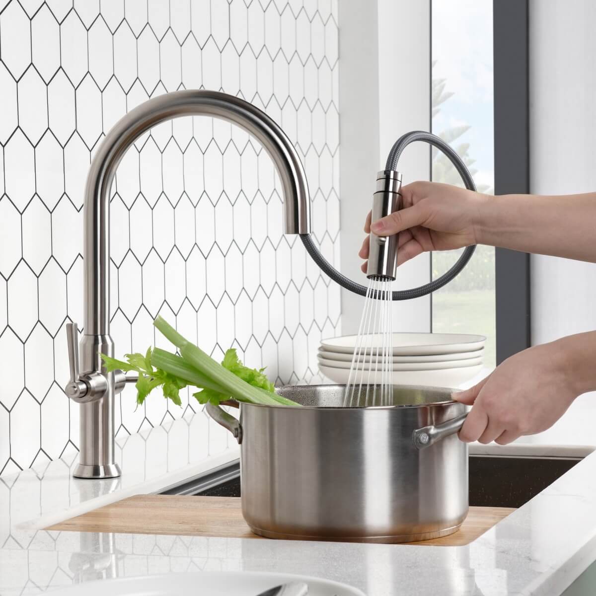 Transform your kitchen into a hub of efficiency and style with the innovative Velox collection of kitchen faucets. These functional faucets are the perfect companion to the popular oversized workstation sinks. Velox faucets deliver exceptional performance, empowering even the most demanding culinary tasks. A truly functional kitchen is defined by its thoughtful features—spacious sinks and purpose-built faucets that streamline workflow and elevate the cooking experience.