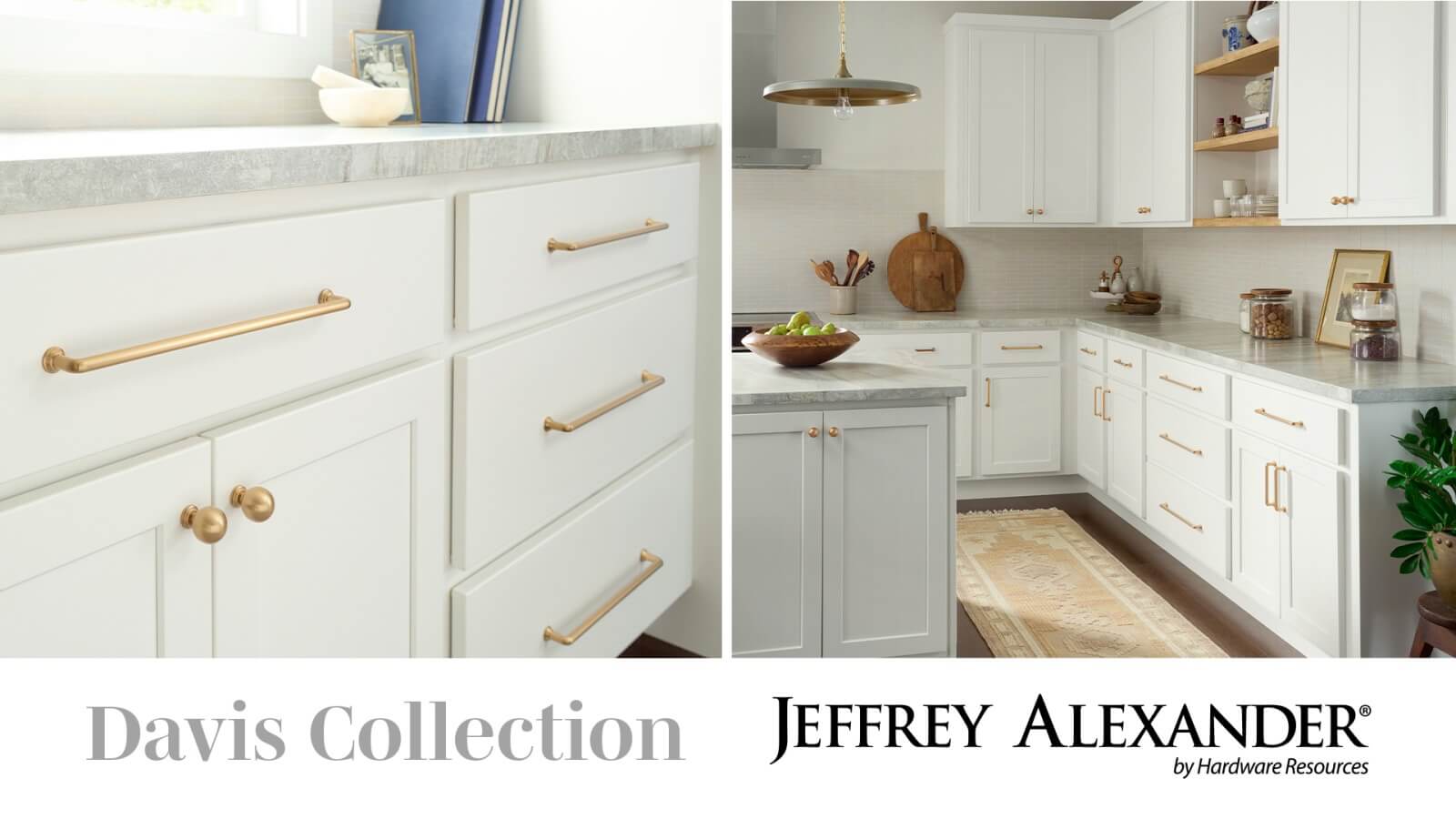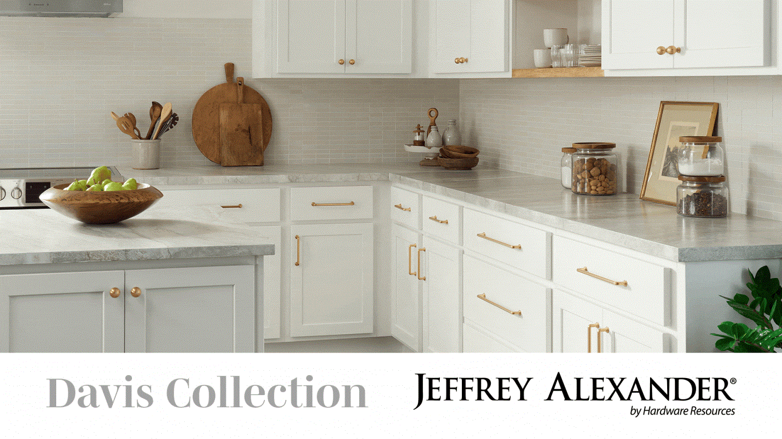 Jeffrey Alexander® by Hardware Resources has introduced a decorative hardware collection that blends seamlessly into traditional, transitional, and modern interiors. The Davis collection embodies a soulful approach to design, featuring a striking spherical knob and a confidently minimal cabinet pull. Expressive curves, subtle structure, and effortless elegance complement cabinetry throughout the home.
