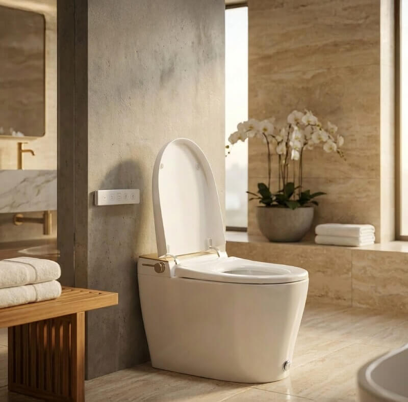 The Upton includes front and rear wash functions, oscillating spray, adjustable water temperature and pressure, a multi-setting heated seat, warm air drying, deodorization, UV sterilization, and a self-cleaning nozzle system that ensures consistent cleanliness. Its strong performance matches its smart features, delivering a 1.25 GPF full flush and a 1,000-gram MaP rating, along with reliable operation during power interruptions through both remote and manual flushing options.