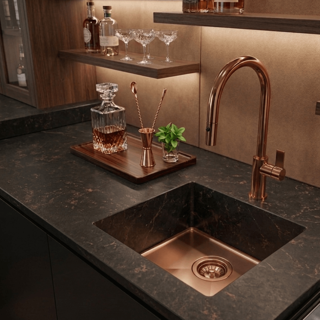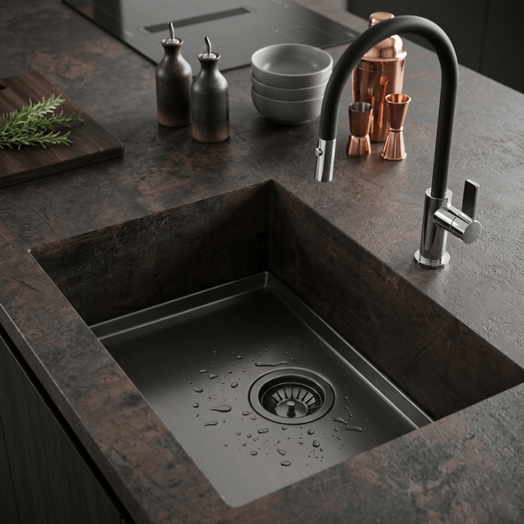These finishes allow the "heart" of the sink to blend perfectly with the faucets and metallic details of the kitchen, creating a chromatic harmony that transforms a functional element into a piece of architectural jewelry.