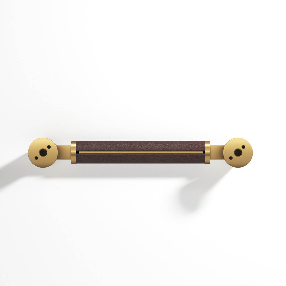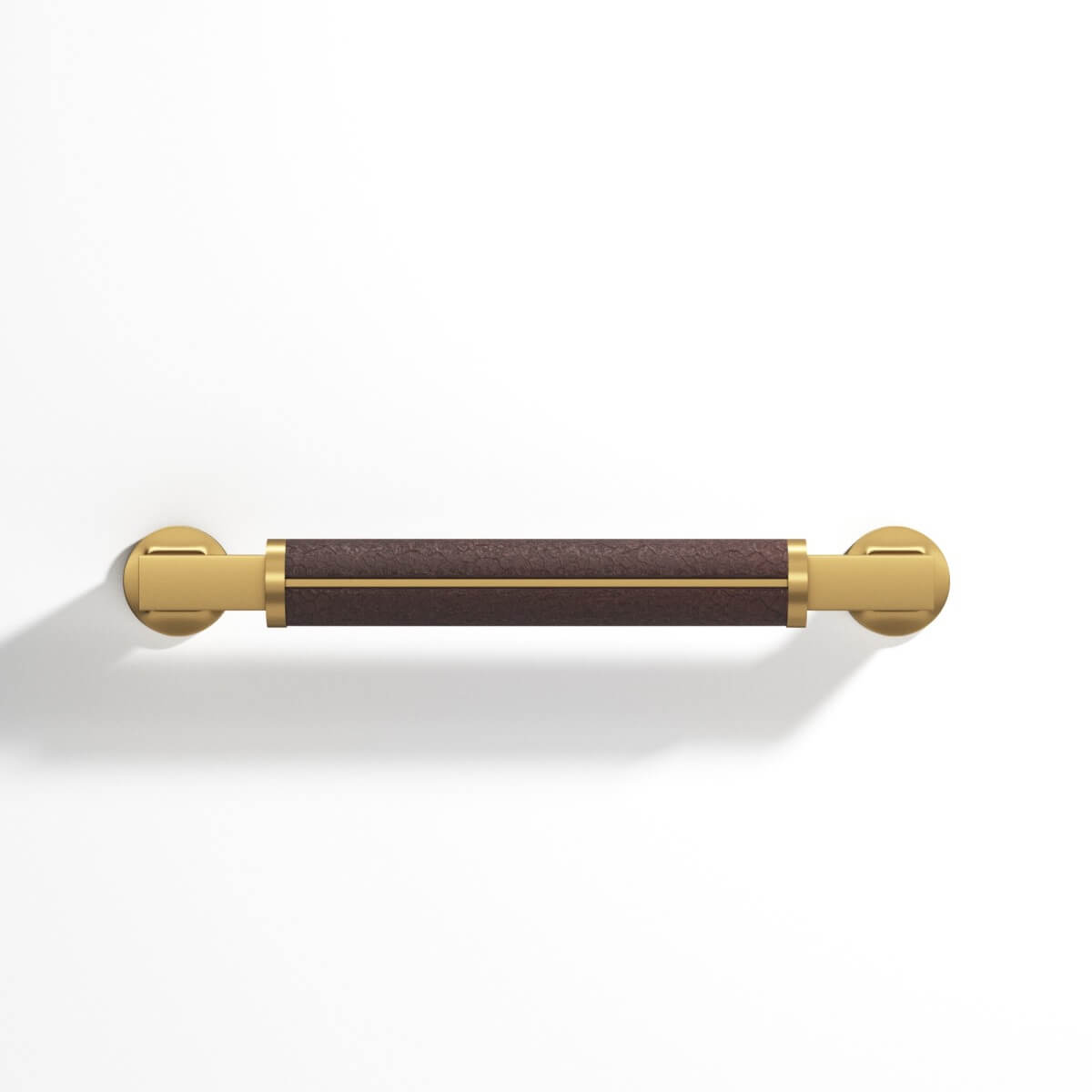 The company’s latest refinement to its leather-to-brass construction method reflects that ongoing commitment. Each pull is machined with a discreet underside channel, allowing the leather to be wrapped under tension, fully adhered to the brass surface, and the remaining edges tucked into the channel using traditional leatherworking techniques.